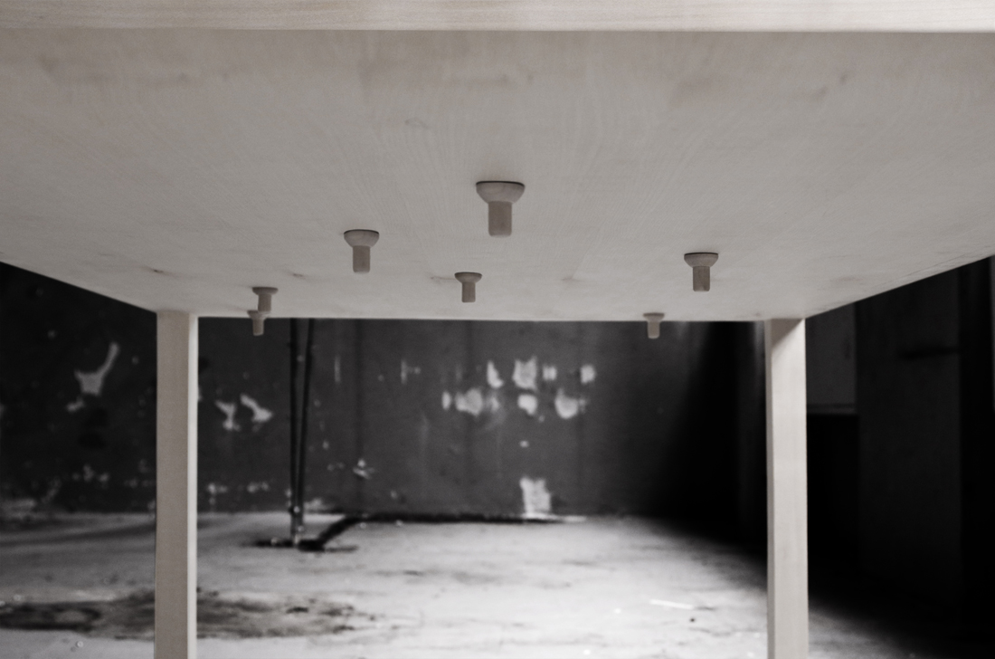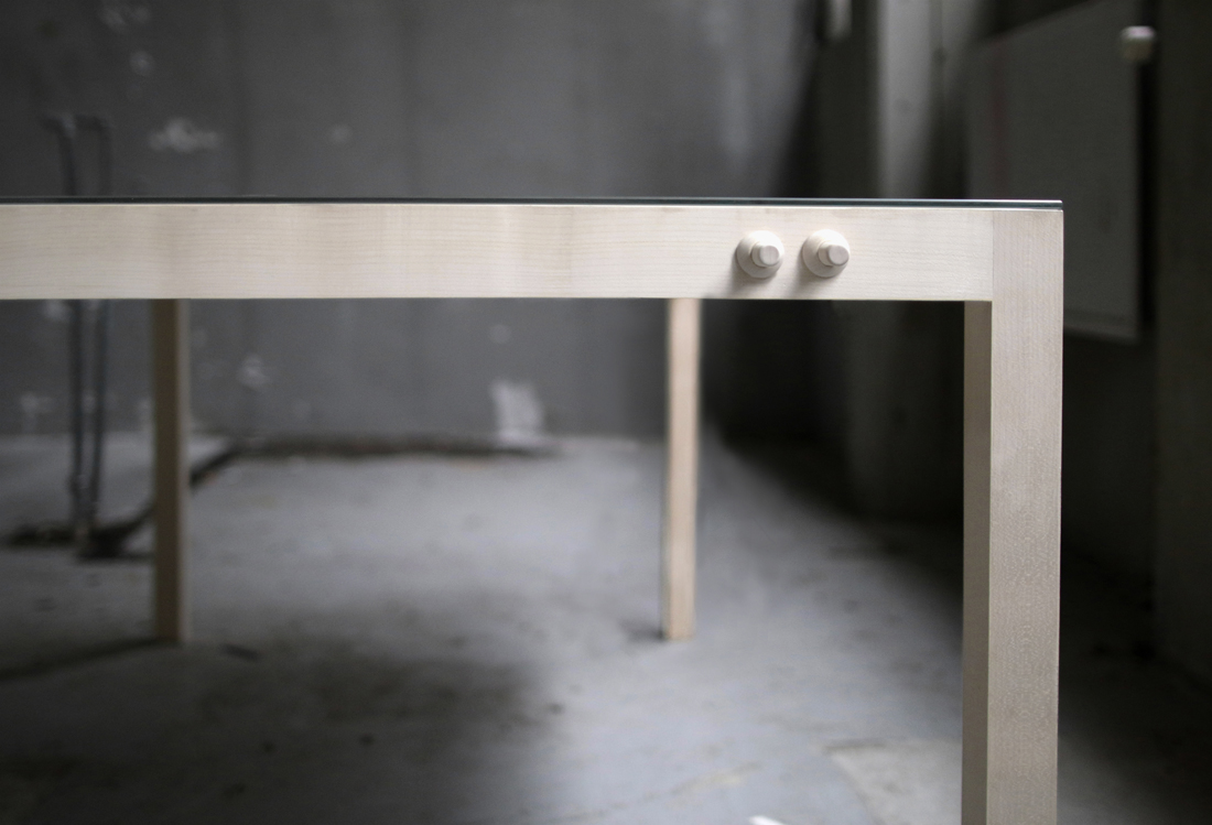 The object is constructed in steel, cladded in wood, providing that through magnetism the pieces can be moved around, using handles bellow the table. The top is covered in glass, making it possible to watch while the game is being played.