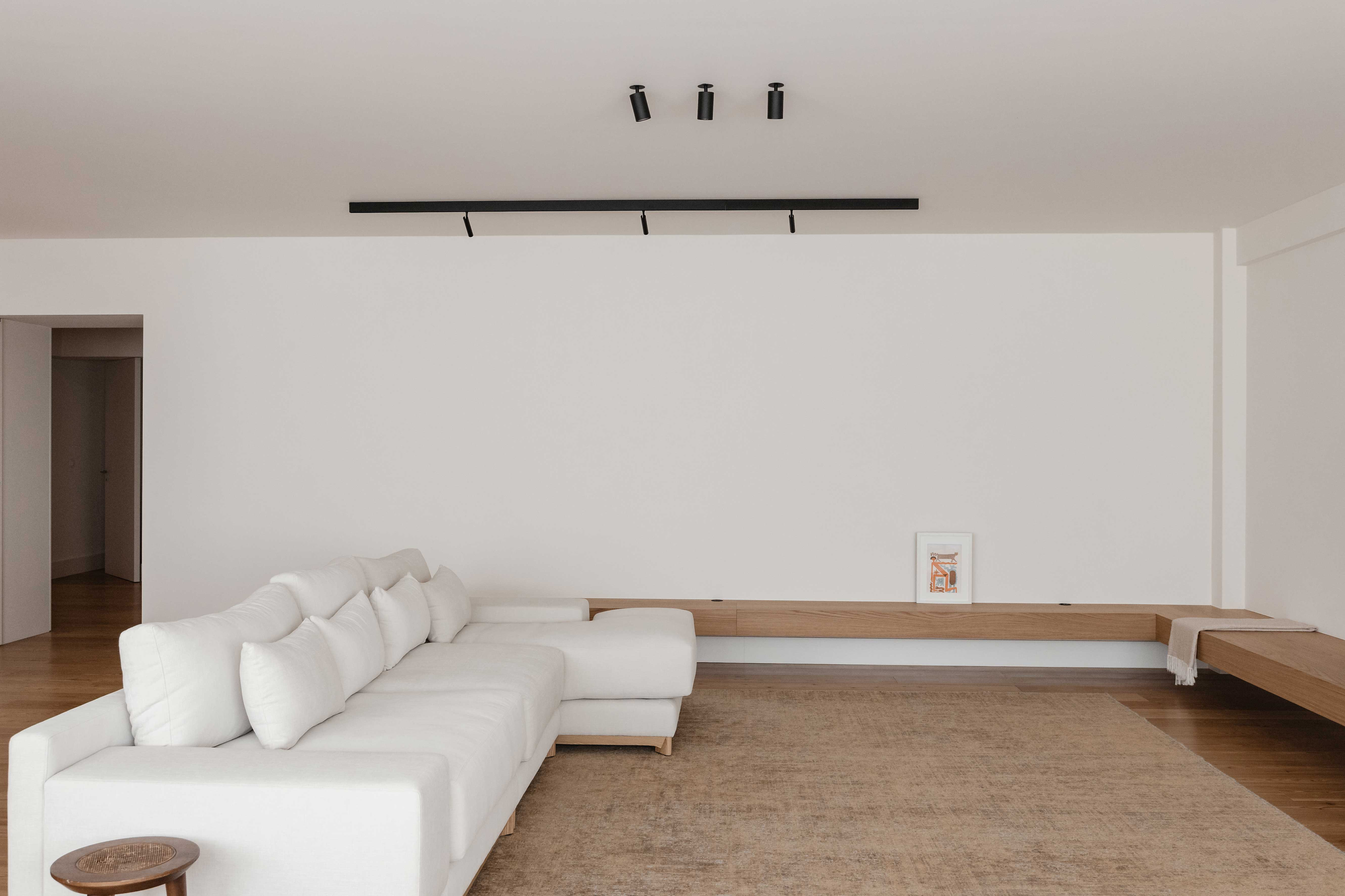 "The essence, abstraction and purity are the leitmotiv for thinking about the project. The choice of materials, the limited colour palette and the combination of finishes give the flat the serenity so evident in Restelo."