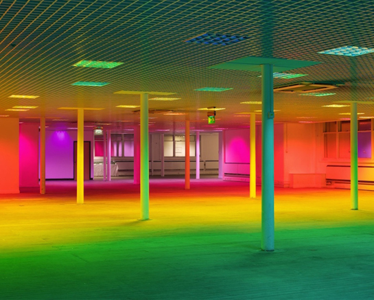 British artist Liz West incorporated light and colour on the site-specific installation Your Colour Perception, specially conceived for the ample space of Castlefield Gallery’s New Art Spaces Federation House in Manchester.